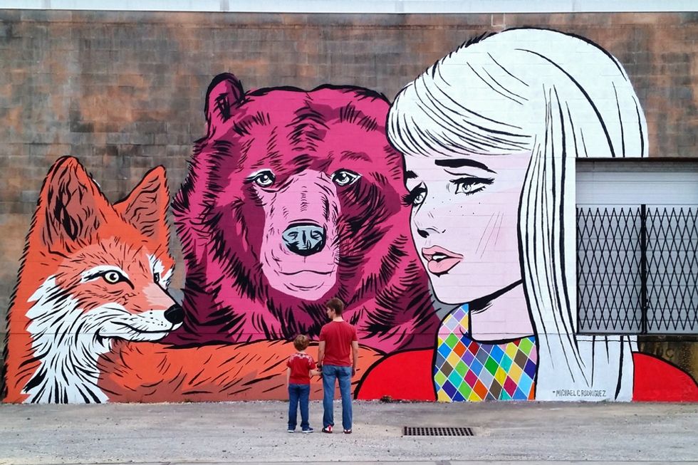 4. "Lady, Fox and Bear" Mural by Michael Rodriguez