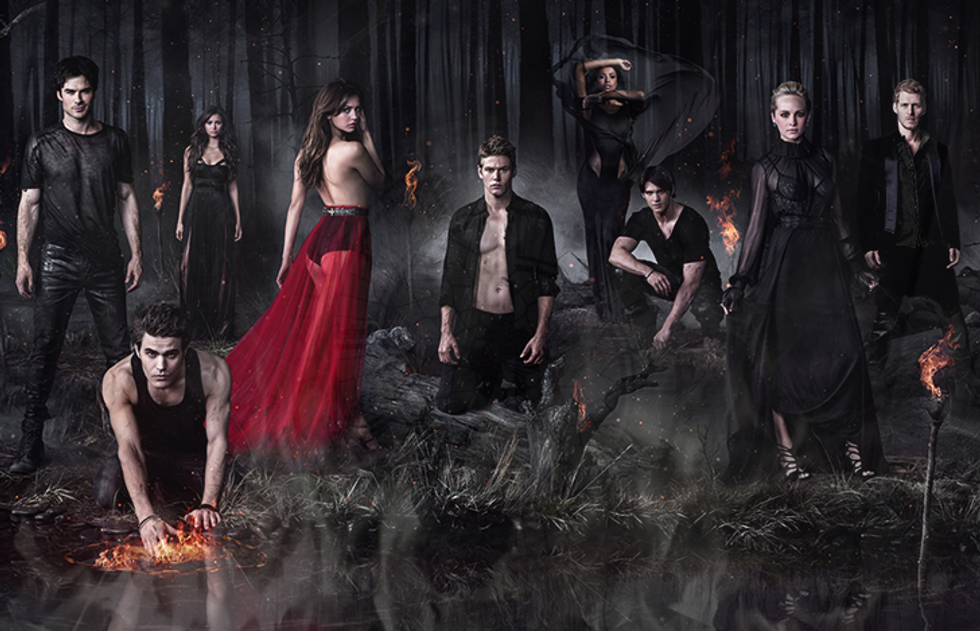 Description: "The series takes place in Mystic Falls, Virginia, a fictional small town haunted and surrounded by supernatural beings such as vampires, werewolves and witches. The narrative of the series follows the protagonist Elena Gilbert as she falls in love with vampire Stefan Salvatore."