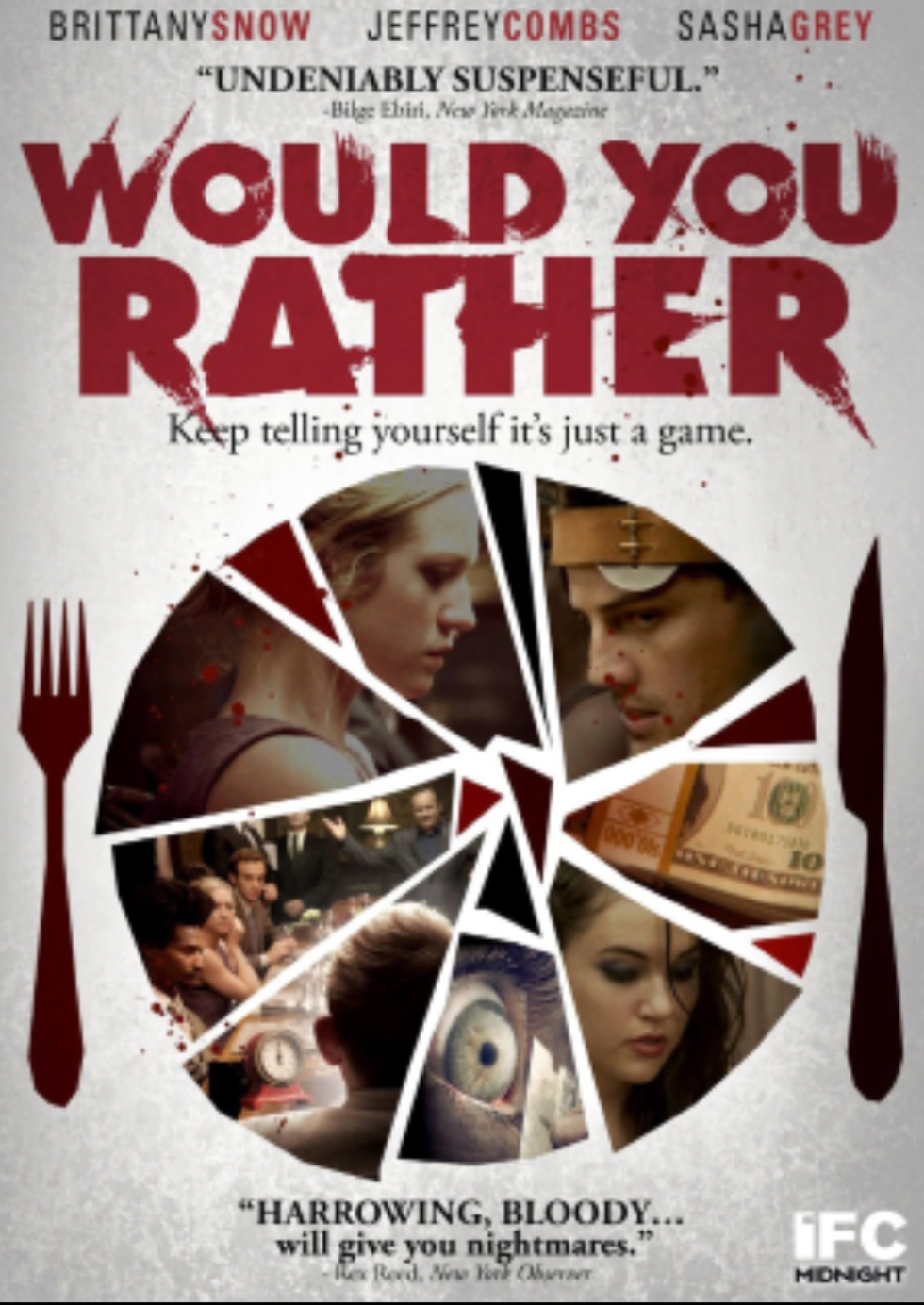 Brittany Snow, (best known for "John Tucker Must Die"), stars in a psychological thriller that will have you cringing all of the way through. In the wake of her brother's fight with cancer, she receives a call from a man who claims he can help her with his treatment. She is invited to a dinner party, where she meets other players, competing for a monetary donation. The dinner party takes a twist, when they all must participate in a life threatening/altering game that no one sees coming.