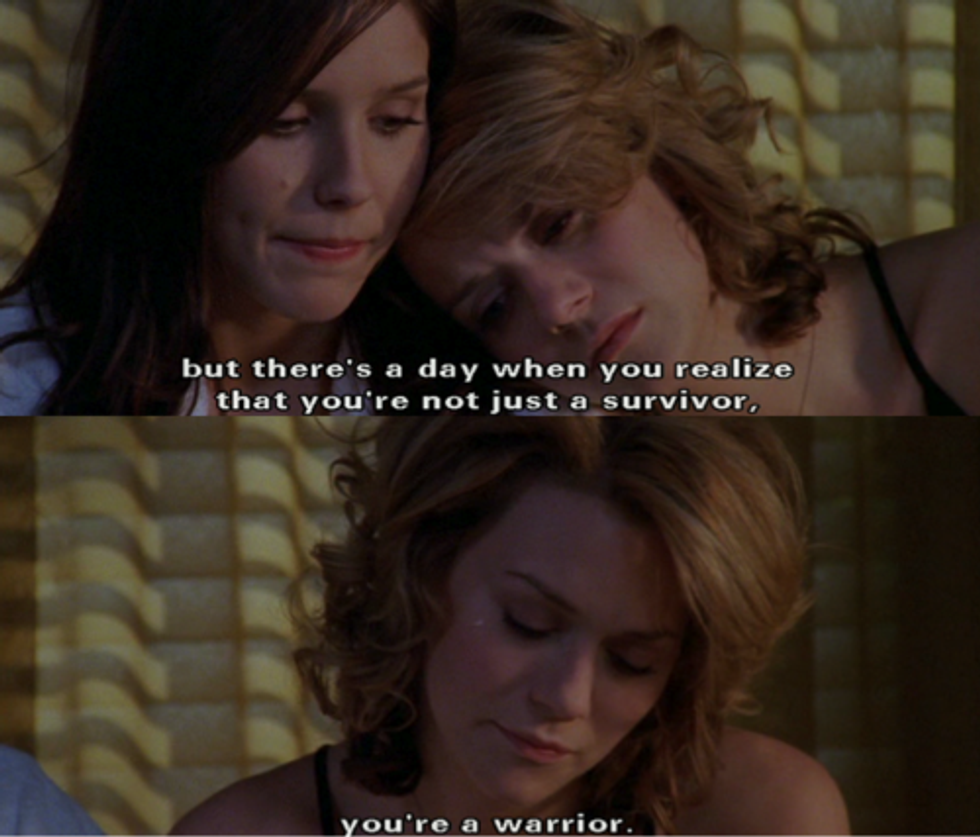 “Life kicks you around sometimes. It scares you and it beats you up But there’s one day when you realize you’re not just a survivor. You’re a fighter. You’re tougher than anything life throws your way. And you are.” - Brooke Davis