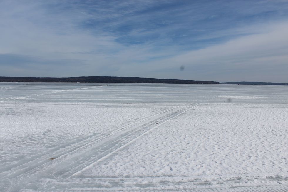 Sure there was still fear that crept into me every time I heard the slightest creak of the ice as I walked on it or the deafening crack as the ice shifted ever so slightly, but those were just seemed like minor worries compared to the vast and open space of lake we were standing on. Hell, we saw a full four wheeler go on and off the ice the night before! It was an incredibly daring stunt, but they were probably experts in dealing with the "Pure Michigan" ice and "Not So Pure Michigan" unforgiving weather.