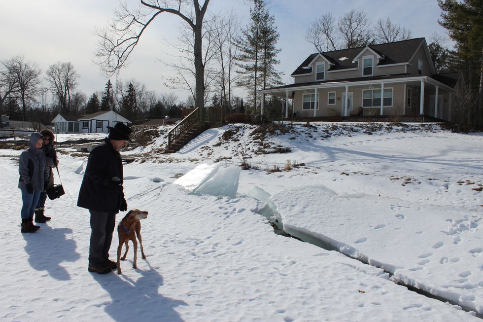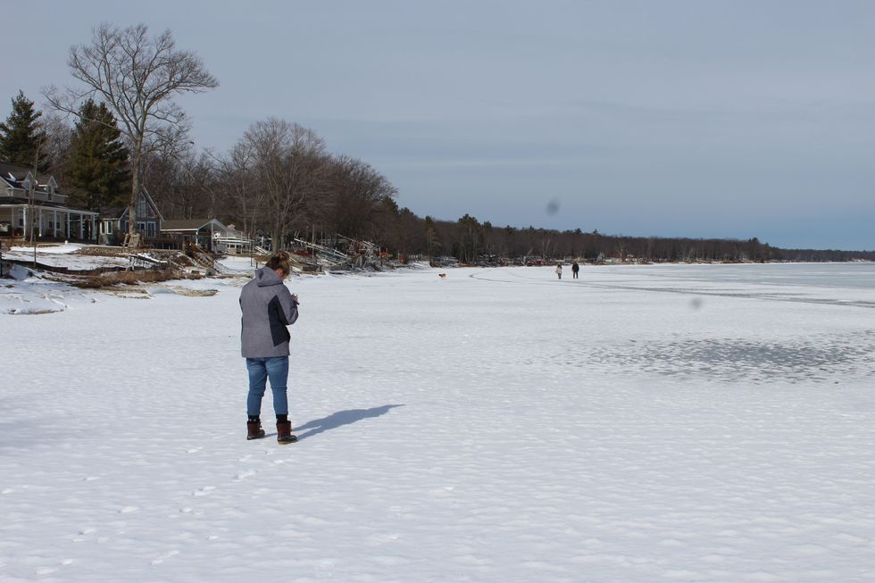 My mom and my sister look pretty close but they're actually pretty far out on the ice. My dad and I stayed back near the shore while they were a little more adventurous and walked out onto the ice.