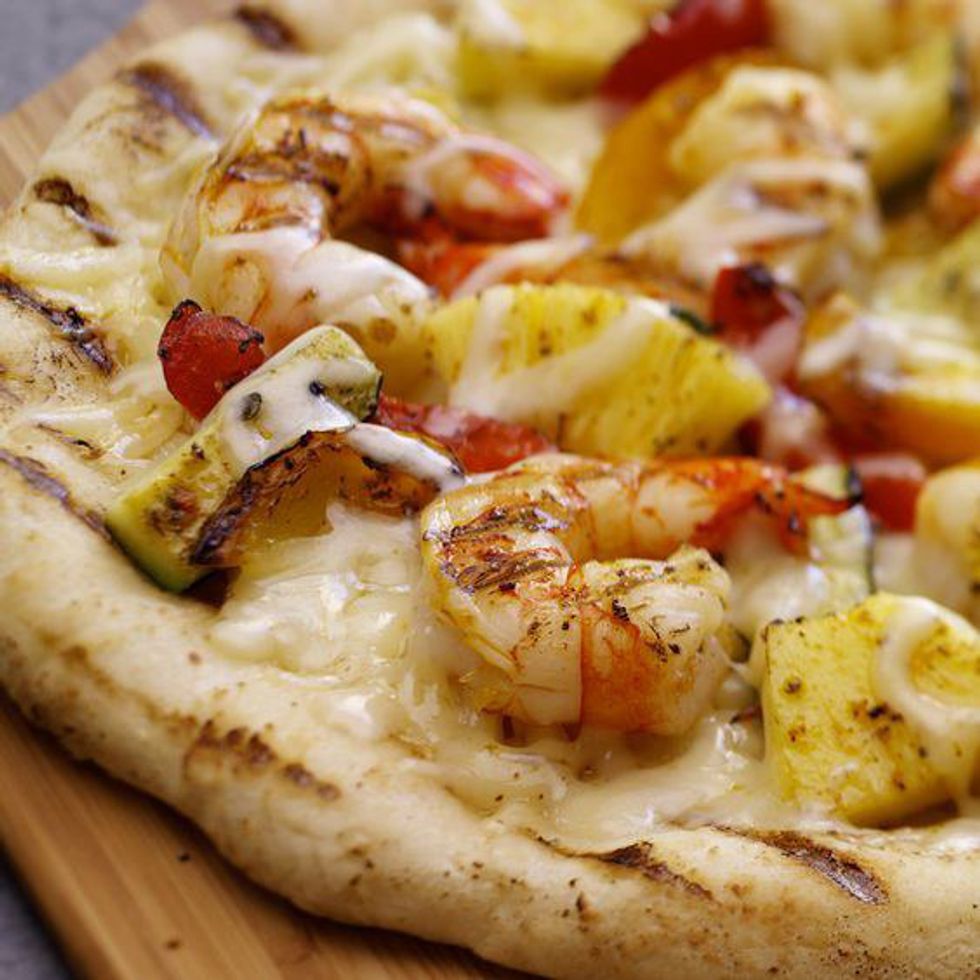 If you're looking for a deliciously tangy and sweet Asain twist on your pizza, this is your dream come true. It starts off with a layer of traditional sweet and sour sauce, and is then topped with fresh shrimp, bell peppers, melted mozzarella, and of course, pineapple. You won't be able to put it down!