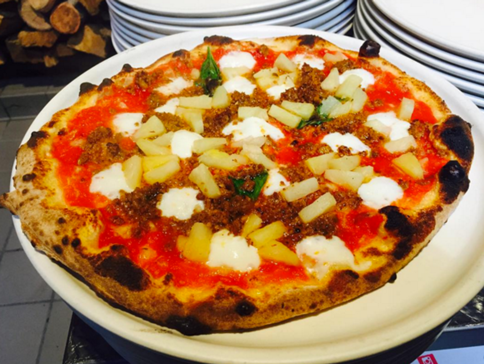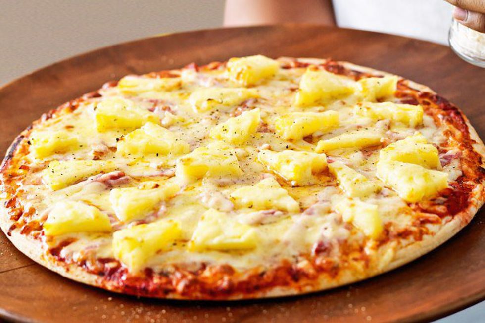 Most of you probably know this one already -- the traditional Hawaiian pizza, made with salty ham and sweet and tangy pineapple. It's the most commonly ordered combination with pineapple for a reason. This pizza will keep your mouth yearning for more.
