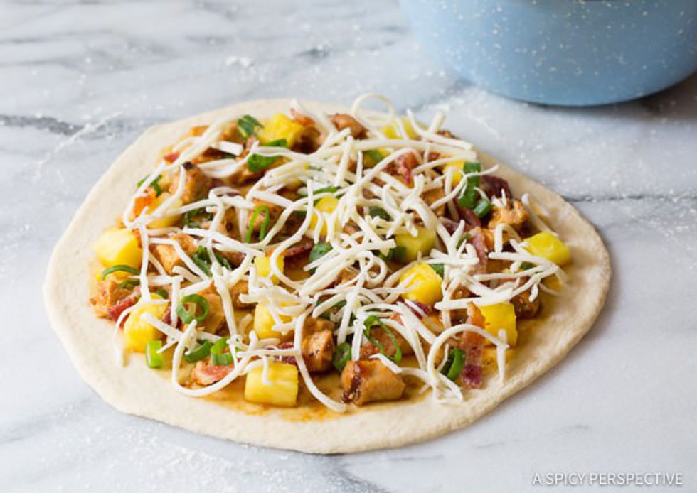 Teriyaki sauce, chicken breast, scallions, and some fresh pineapple make for a delicious slice of pizza with a wonderful Asian twist. Sweet, savory, and salty -- What more could you ask for?