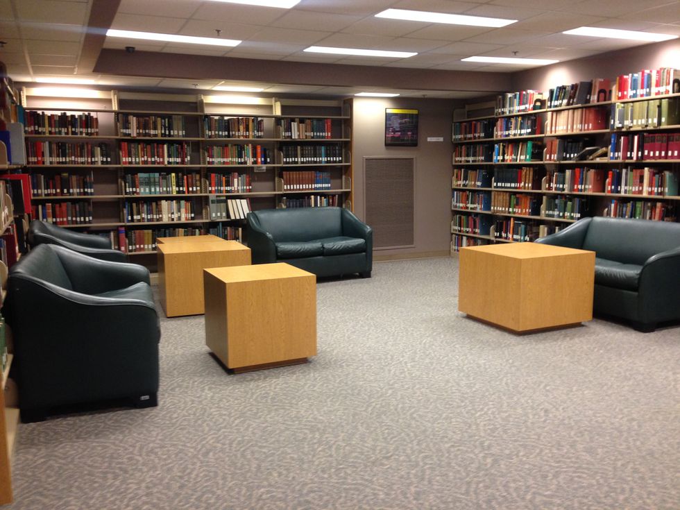 Also referred to as the "lower level" of the library, this floor is only accessible through a staircase towards the back of the building. The basement contains more books as well as a hangout area that nobody ever uses. So if you're looking for a different study space, the library basement is a great place!