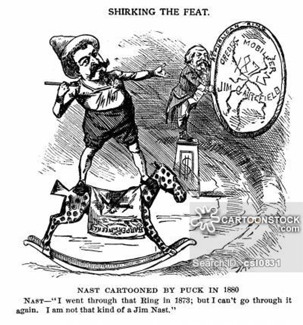 What happened: As some of you might know, the first transcontinental railroad was completed during Grant’s presidency. Stockholders of the Union Pacific Railroad formed the Credit Mobiliér Company, through which they assigned contracts to build the railroad. Seems innocent, right? Not so much. Congressmen were given shares and approved fairly lucrative federal subsidies that made enormous profits for the railroad builders and, in turn, the Congressmen. The scandal resulted in the censure of House members Oakes Ames and James Brooks and destroyed the careers of others.