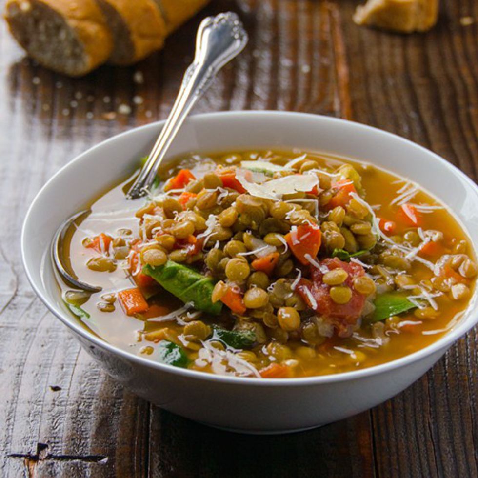 For centuries, deemed one of the "world's healthiest foods," due to their incredibly high fiber and lean protein content per gram. These hearty legumes also contain over 80% of your daily iron content, an essential nutrient for preventing both your body and brain from feeling weak and lethargic. Lentils are an especially appealing option in the colder months as they make a filling addition to lots of winter soups and chills.