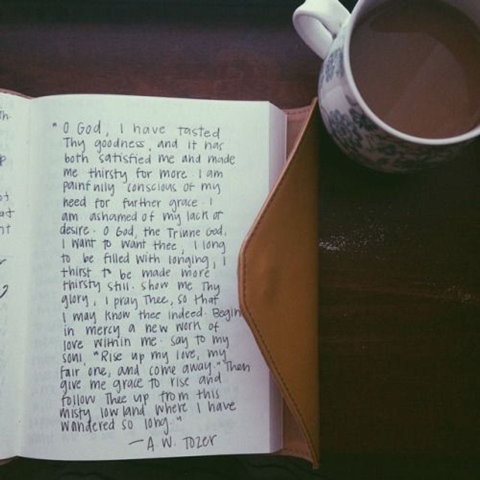 A.W. Tozer prays for humility so he can earnestly seek God, and for rescue from himself. We should always pray for more thirst for Christ, because it is not in our nature to thirst for something we cannot easily see.