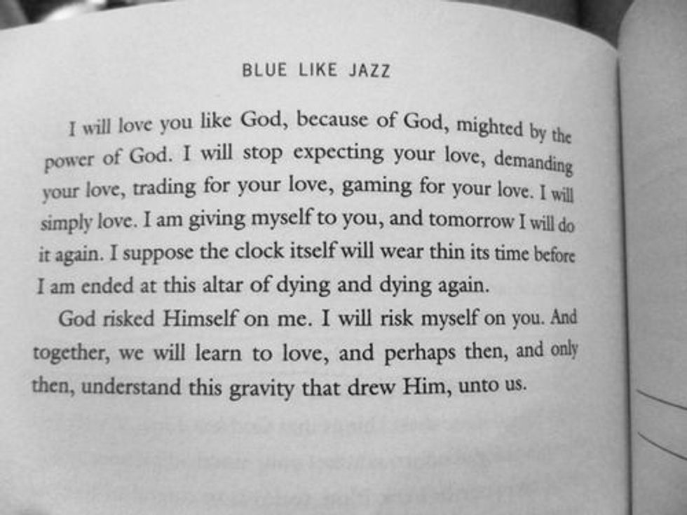 This is a quote from my favorite book. It was the first book I read that changed my perspective on God and therefore made me want more of Him. This quote is about loving people like God loves us.