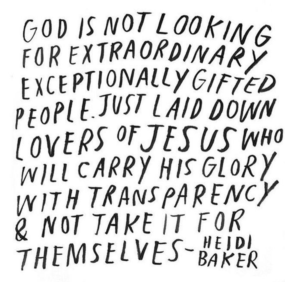 This quote from Heidi Baker reminds us that God is not looking for perfect people, or even people who strive to be perfect. He is looking for “laid down lovers of Jesus” who will be humble and caring with His love rather than keeping it to themselves.