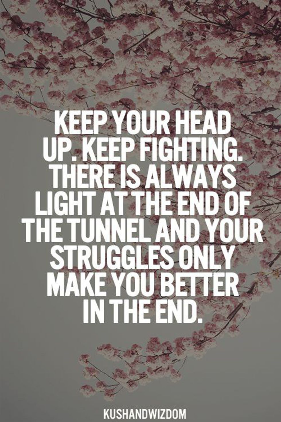 "Keep your head up. Keep fighting. There is always a light at the end of the tunnel and your struggles only make you better in the end."