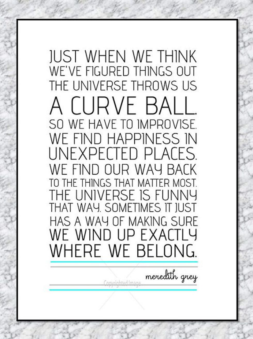 If Meredith Grey can be this optimistic after surviving a plane crash, a shooting, and losing her McDreamy, I think we all can. There's nothing wrong with being futuristic and having an image in your head of how you expect your life to be. But you must always be ready for this image to change, because it will, a lot.