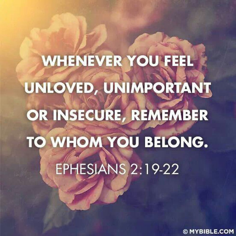 "Whenever you feel unloved, unimportant, or insecure, remember to whom you belong." - Ephesians 2:19-22