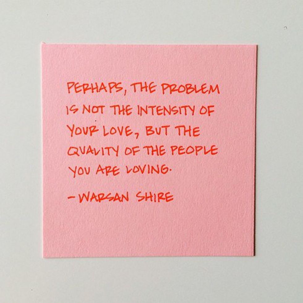 "Perhaps, the problem is not the intensity of your love, but the quality of the people you are loving." - Warsan Shire