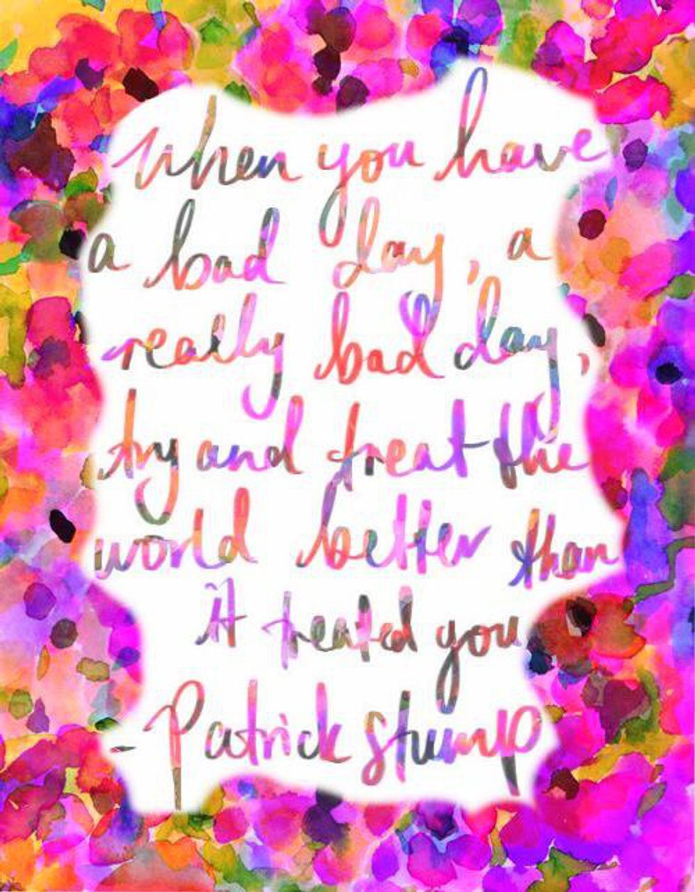 "When you have a bad day, a really bad day, try and treat the world better than it treated you." - Patrick Stump