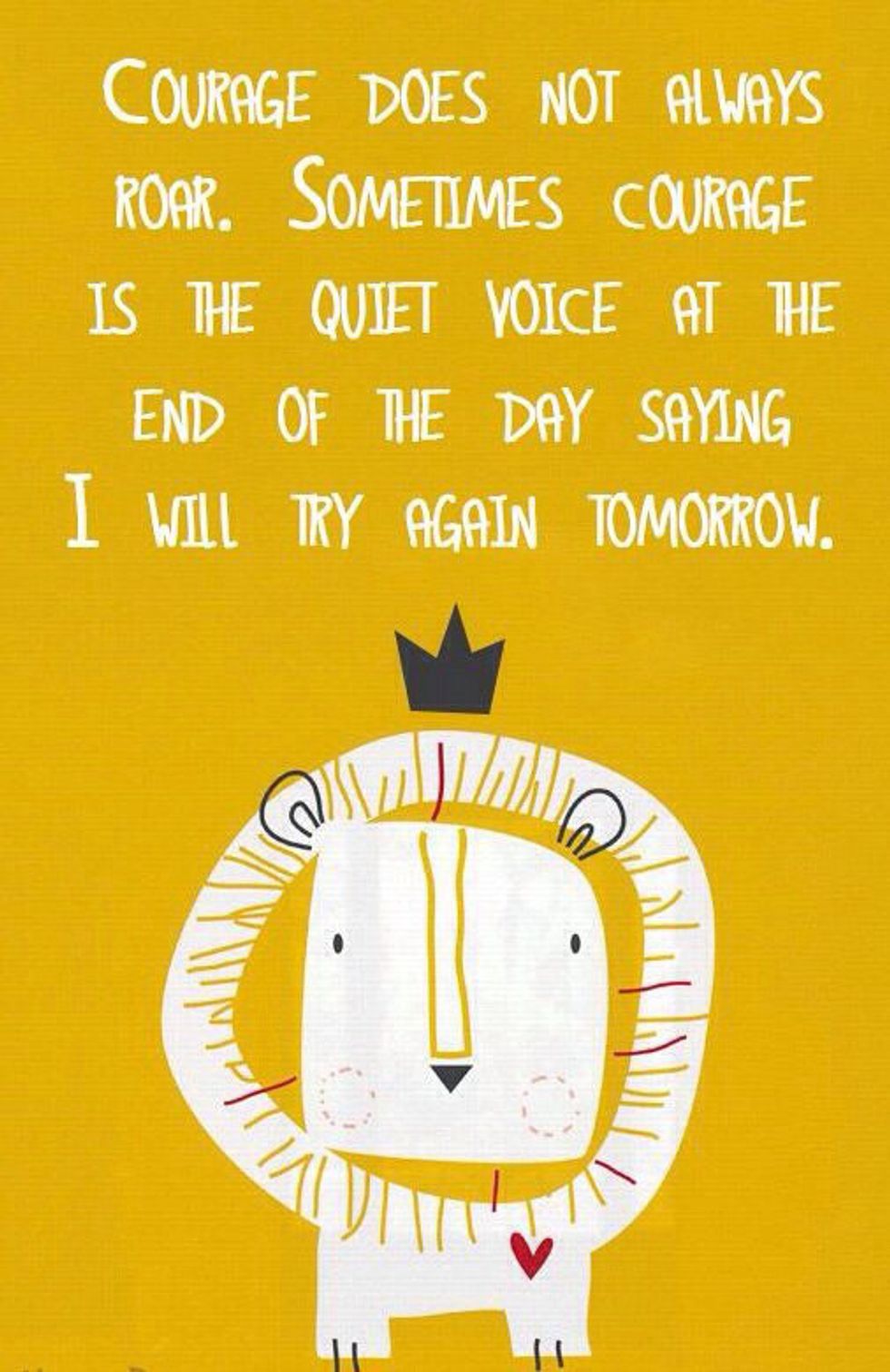 "Courage does not always roar. Sometimes courage is the quiet voice at the end of the day saying, I will try again tomorrow." - Mary Anne Radmacher