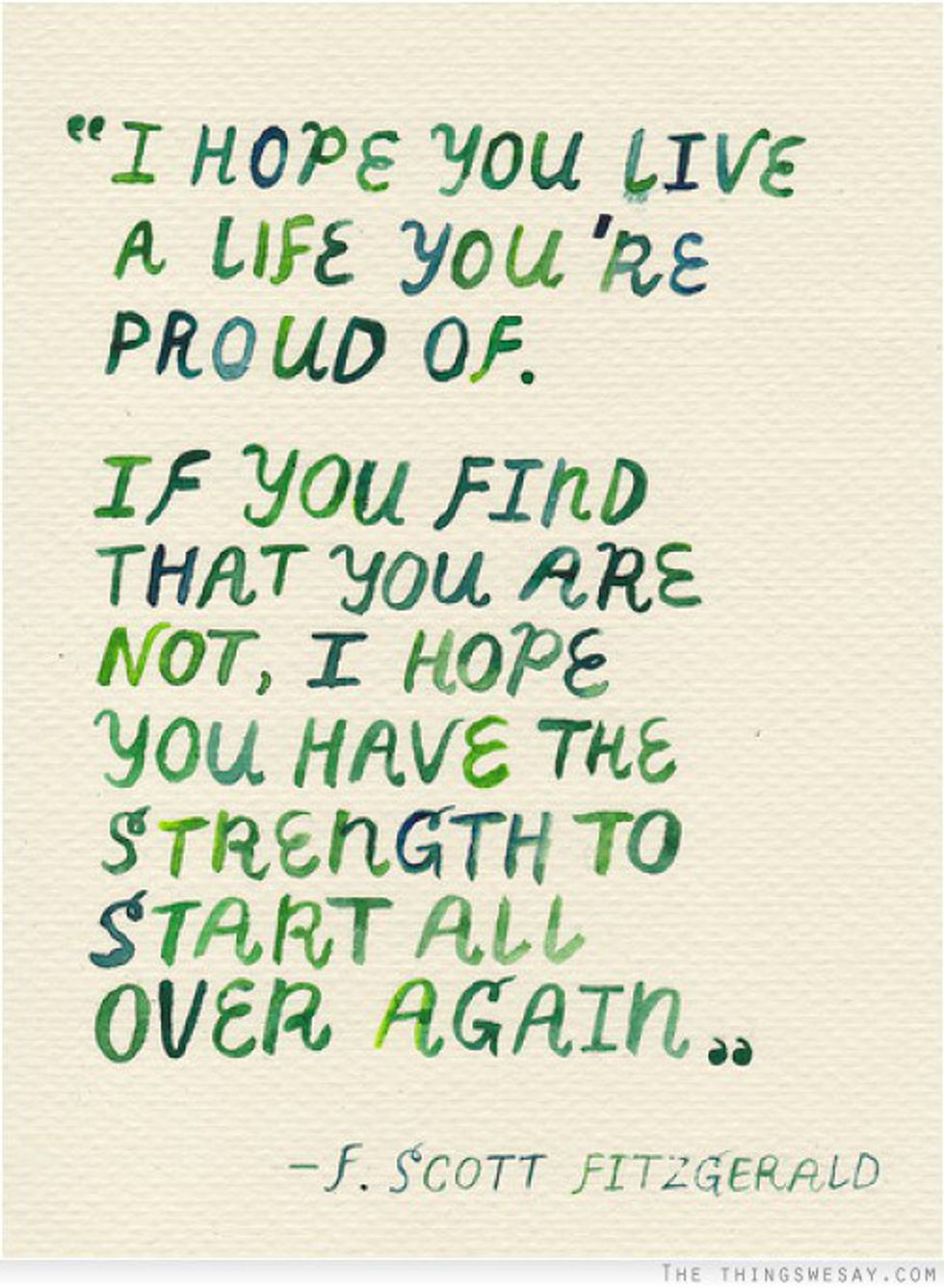 "I hope you live a life you're proud of. If you find that you are not, I hope you have the strength to start all over again." - F. Scott Fitzgerald
