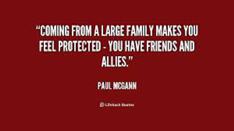 Everyone goes through rough times, whether it be financially or emotionally, and with a big family there is always someone there to help you get back on your feet and always someone to talk to.
