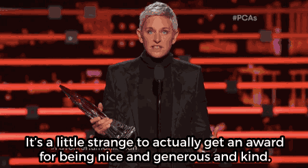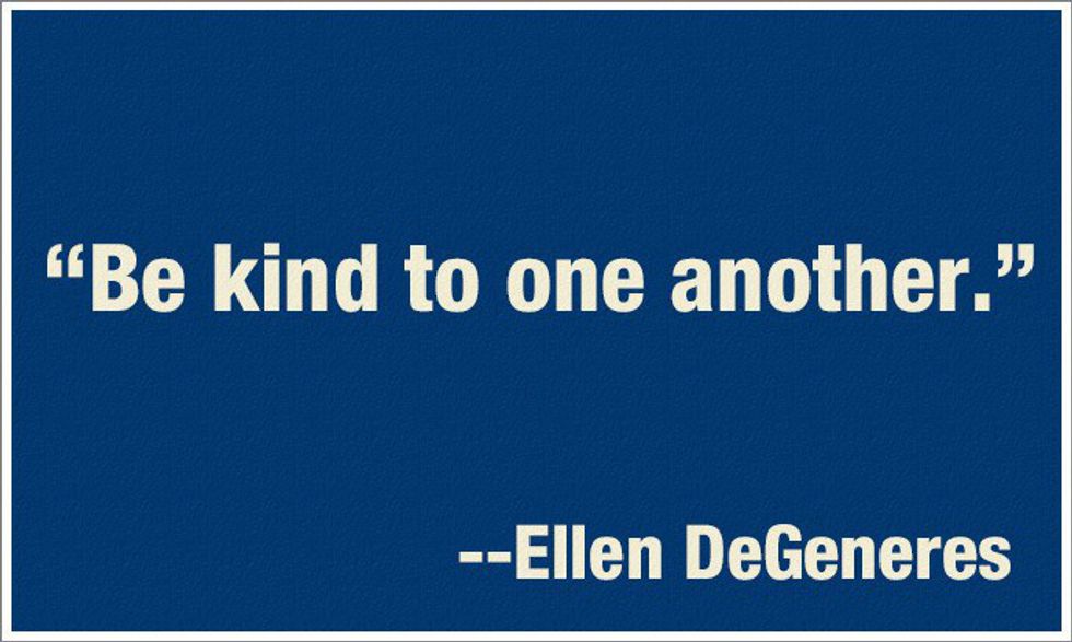 Ellen ends every show with this phrase. "Be kind to one another." She shows so much compassion for other people, and wants to do nothing but help. She has one of the biggest hearts out there.