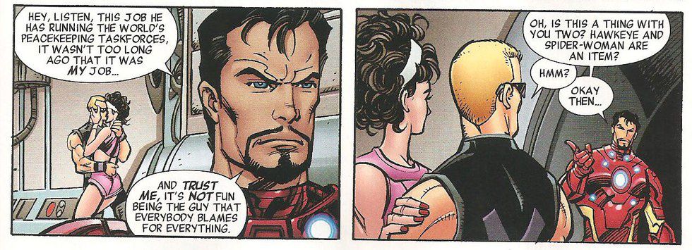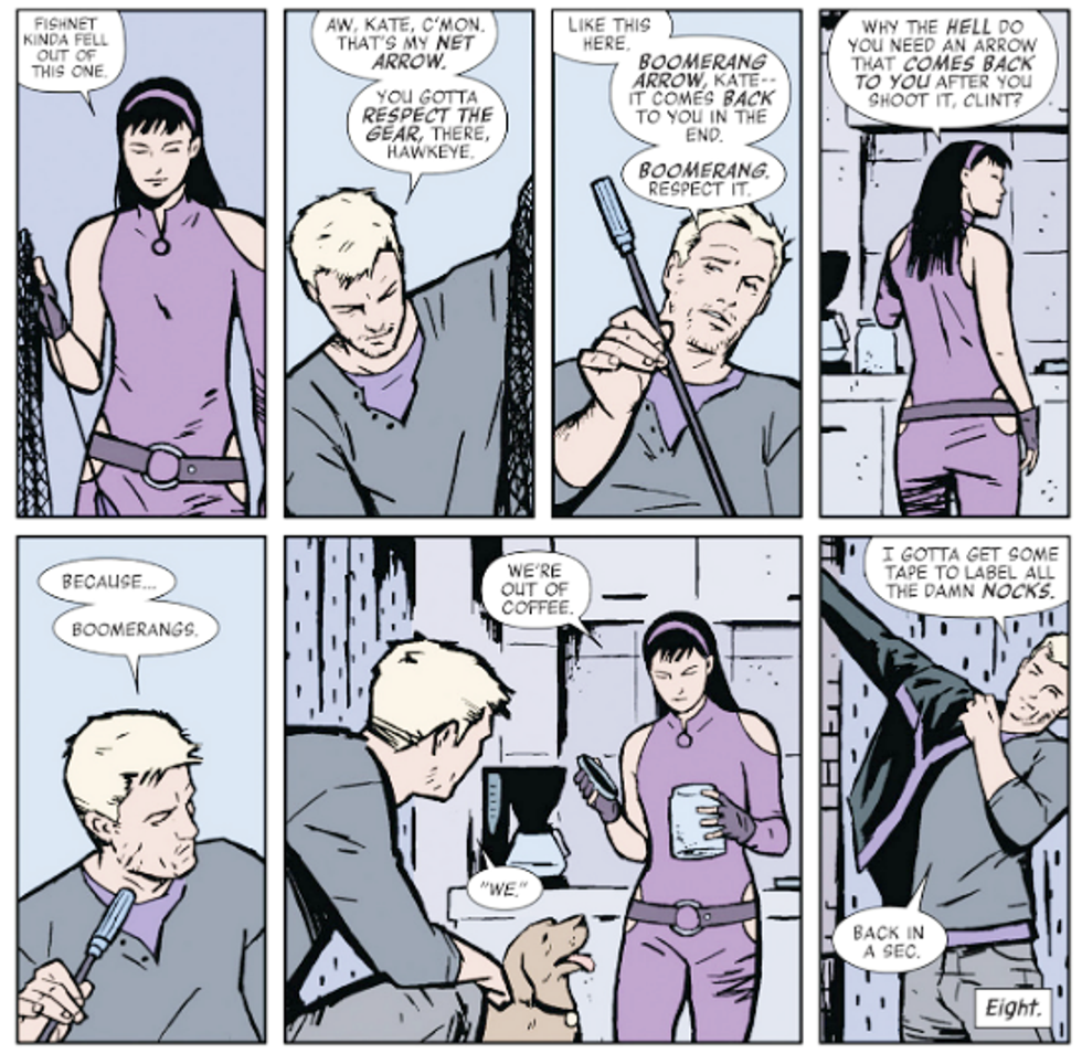 This is pretty consistent between universes — Hawkeye is in the movies for his one liners, and in the comics he is still the comic relief.