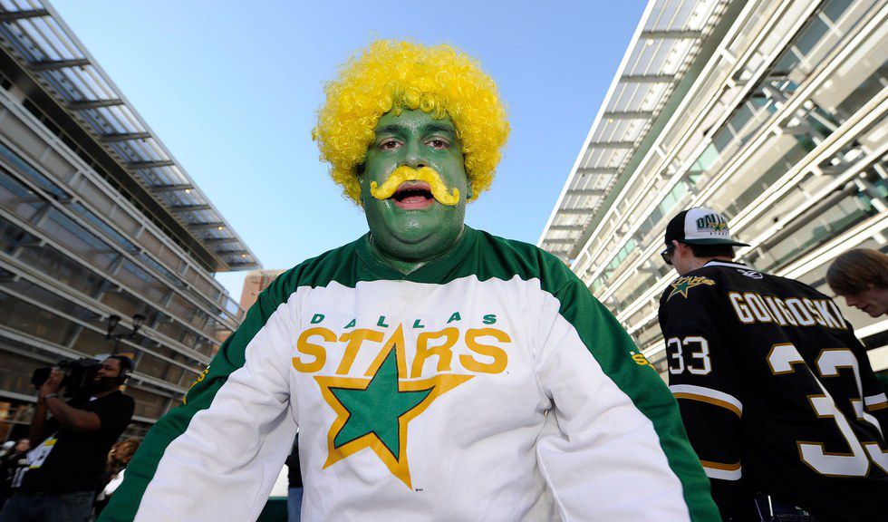 Where else would you see someone who has decorated a Captain America costume to match their team's colors?