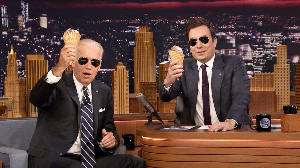 Look at how happy he is. He's just so cool (no pun intended). At a speech in Columbus, Ohio, Biden literally said "My name is Joe Biden, and I love ice cream. You all think I'm kidding — I'm not. I eat more ice cream than three other people you'd like to be with, all at once.” That's a direct quote. Just think about how fun it would be to eat ice cream together. That's the dream.