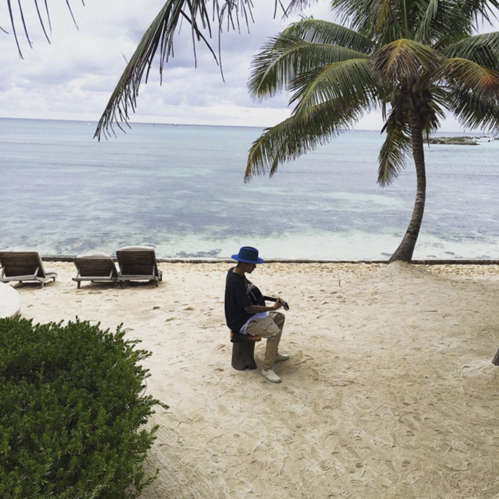 9. This oh-so-natural candid shot of Justin "writing music" on the beach, as he informs us in his caption