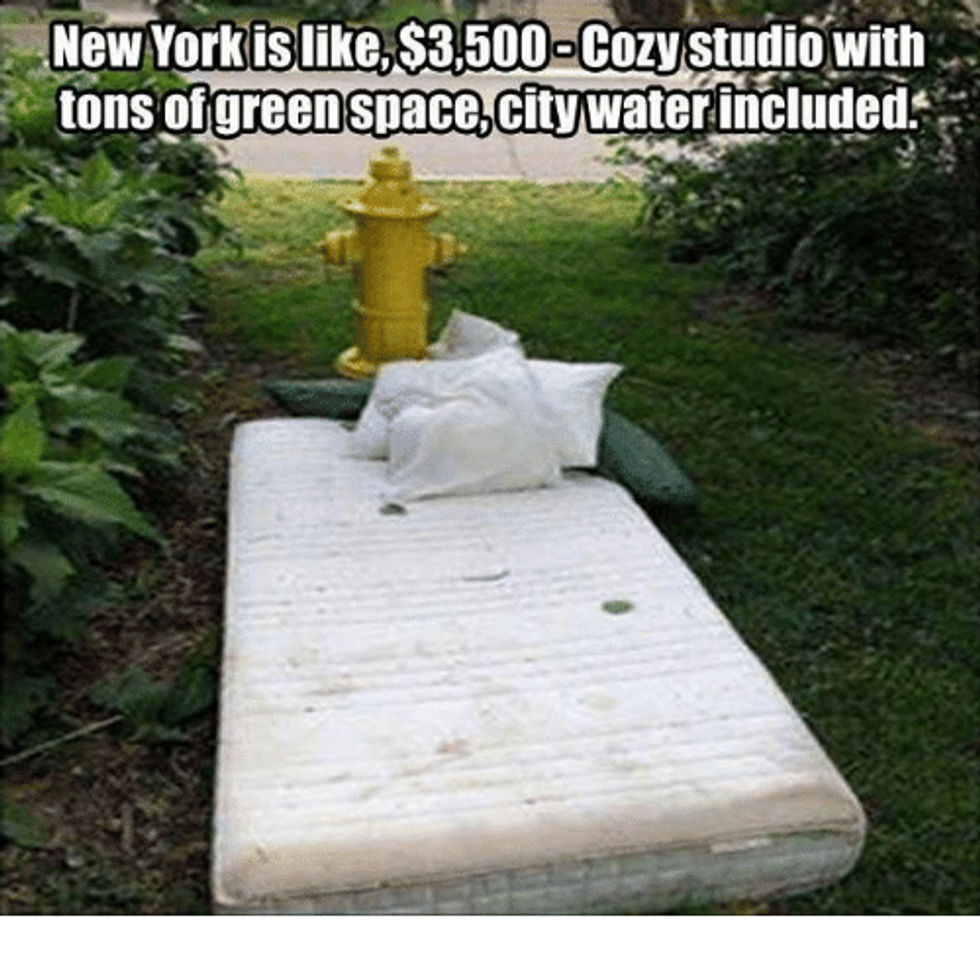 New York City: The city that never sleeps, the land of opportunity, and where our most wildest dreams can only happen. Although not impossible to live in, there's a lot of money (and some organs and limbs) to sacrifice before you can live in the big apple. However, if you do want affordable housing, you will have to sacrifice space and privacy with strangers or live hours away from Manhattan to save up money — but anything to say you live in NYC, right?