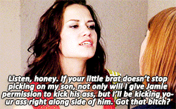 Haley, who was known as nothing other than "Tutor Girl" in high school, has an aggressive streak only when she is given good reason to. She is never one to back down from getting into somebody's face, or even physically slapping, anybody who threatens her or her family. Haley picks her battles, and those who are on the opposing end quickly learn that she is a force to be reckoned with.
