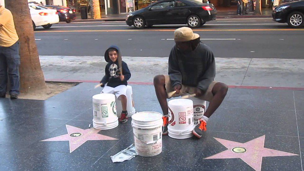 Bang some pots together, stamp your feet, clap your hands, whistle, tap pencils on your desk, or just open your mouth! You can make a beat with nearly any object at your disposal. Seriously, there's a song built entirely from the beat of cup on a table -- not to mention all the street artists who play for tips on a drum set made of buckets! Those guys have some serious skill, too.