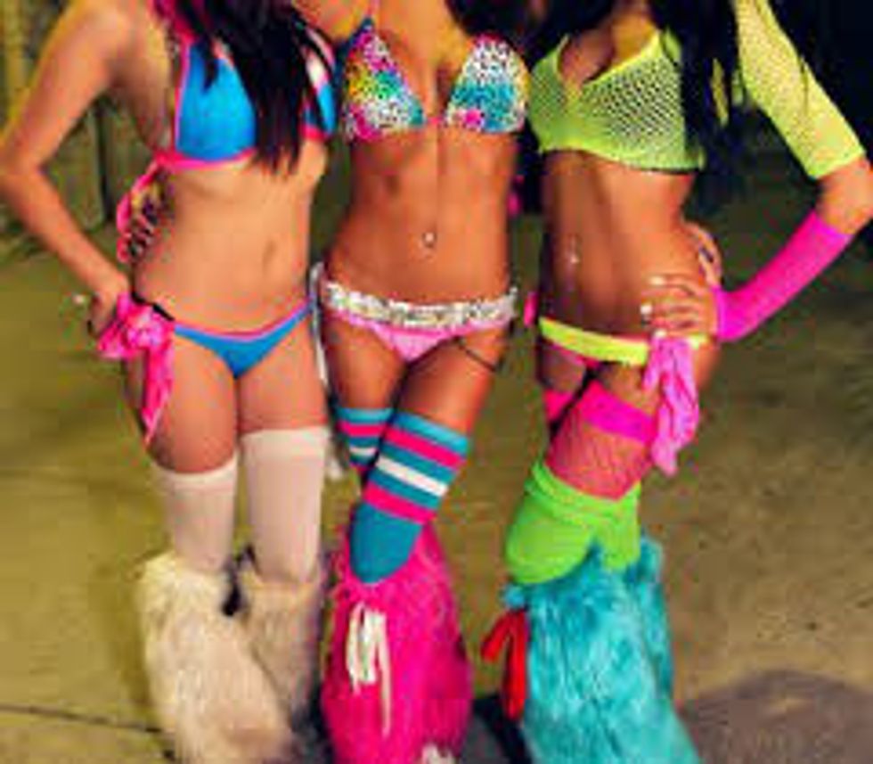The clothes people get to wear to raves, concerts, festivals, etc., are pretty unreal. Fluffy boot covers, mesh, neon and glow-in-the-dark are fully accepted and encouraged at these festivals -- how fun is that? You won't be judged for going all out.