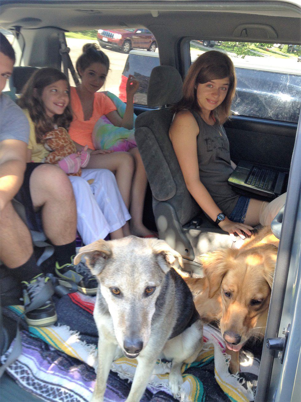 You’ve got leg room in a minivan. My family of six was able to make the 16-hour drive from Boulder to Spokane with our two dogs every year growing up with very minimal fighting related to elbows in your zone. Plus look at how stoked we all look here.