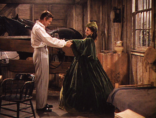 I’m no expert in southern belle couture, but it’s hard to ignore Scarlett’s fabulous taste in fabric. And her fashion sense is just a reflection of her personality: bold and daring. From her memorable white and green floral dress at the Wilkes barbecue (and not to mention my personal favorite) to wearing actual drapes, the dresses in this movie are so famous that they’re sealed tight in glass on display at a museum just outside Atlanta, GA. We may not wear corsets and hoop skirts anymore, but Scarlett’s style is one to remember for ages. Besides, dressing like everyone else is boring.