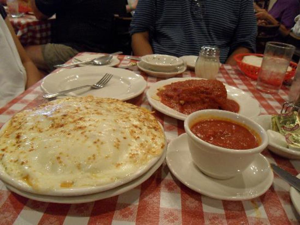 A mound of cheese with a side of pasta, please. If you order the spaghetti Parmesan from Chef’s, it’s pretty much a heart attack on a plate. Their homemade sauce is piled on top of buttery pasta and a boatload of melted mozzarella cheese. The cheese on top of the pasta is baked so that it's bubbly and golden brown. When you go to bite into it, you get a big, gooey bite of cheese. Yum.