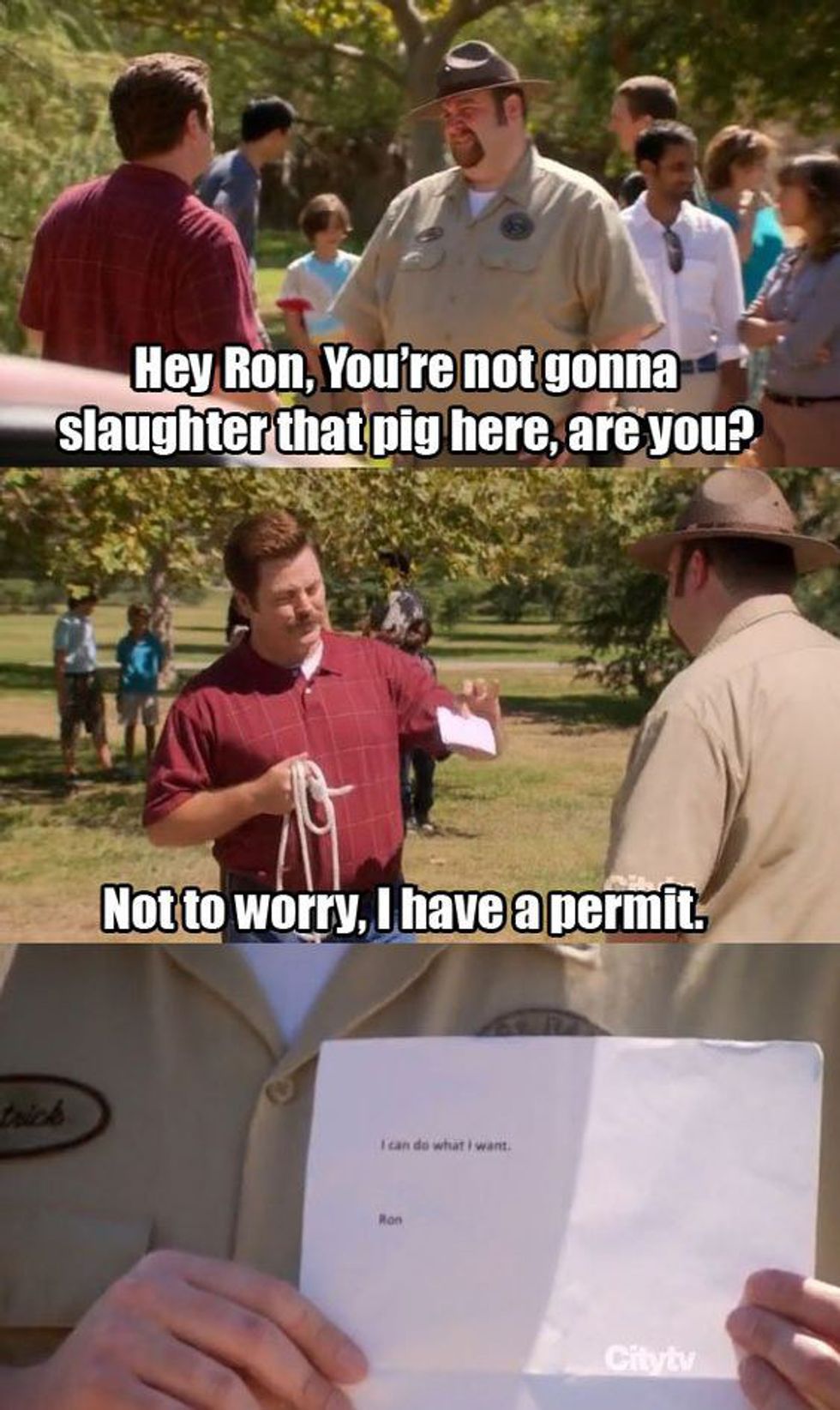 Ron Swanson, a man full of so much wisdom, and a love for breakfast meats that can't be matched. How we all wish you were real. There is no better way to end this article than with the words of Mr. Swanson himself: