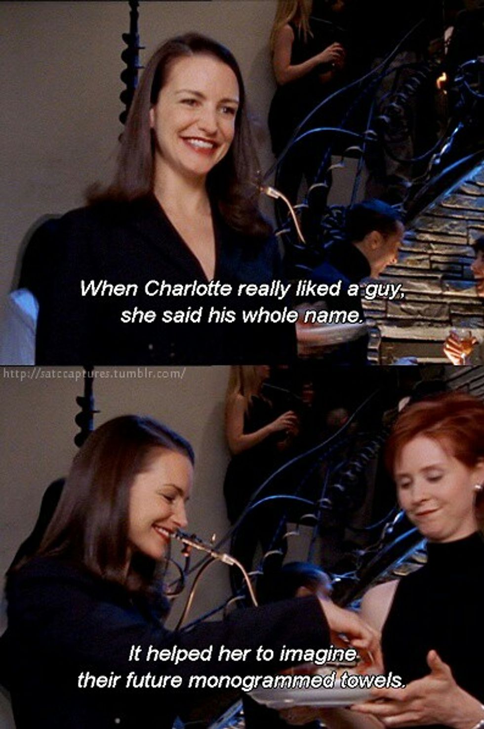 You love anything monogrammed. You have everything in your closet monogrammed. You think about your monogrammed hand towels just like Charlotte.
