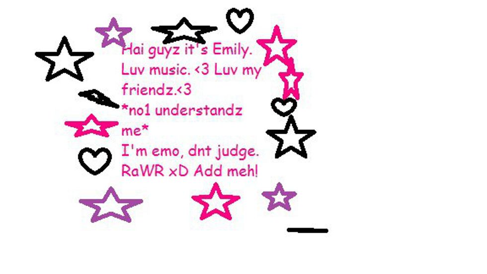 If you're anything like me, when you get the updates from TimeHop, somewhere after 3 years, it gets really ugly, and not just middle-school-picture ugly. If you go back far enough, you enter into the realm only able to be described as the emo-phase. It was a rough time, and no one understood you. You were unique, like every other racoon-eyed emo kid, just waiting for someone to mend your "broken" heart. If you exhibited any of the following signs, you were an emo kid. Let's squeeze into our skinny jeans and band tees, and take a trip down memory lane, shall we?