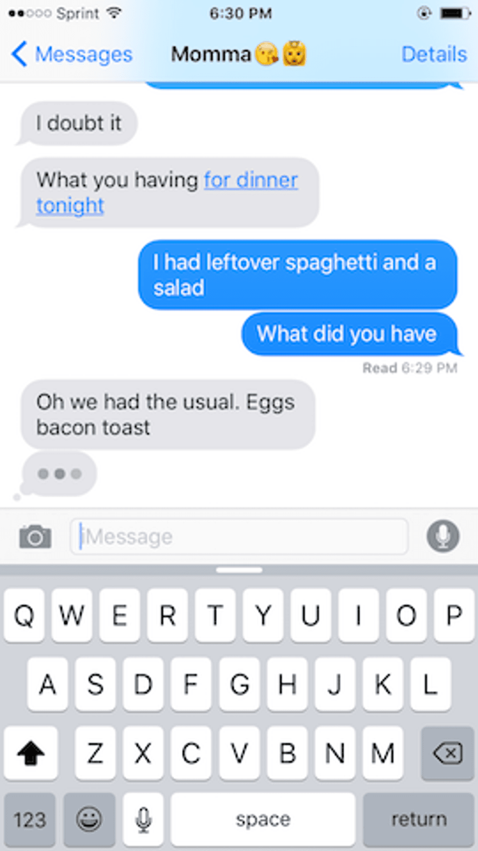 If I don't get a good morning text then something is up. And if I don't text her back within a couple hours, I can count on an "r u ok?" text or phone calls until she knows I'm alive. One time, I even Facebook messaged her co-worker/friend just because my mom hadn't texted me all day.
