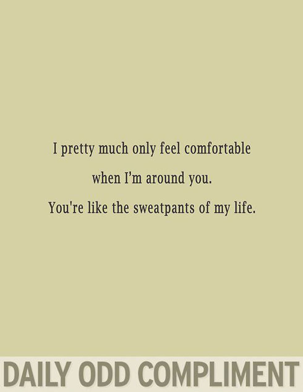 Don’t act like someone’s holding you at gunpoint and telling you to think of something to compliment the person on. Don’t force the compliment. People can smell a forced compliment a mile away and believe me, it does not in any way, shape, or form convey love.