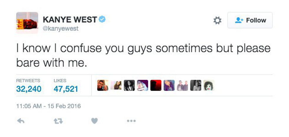 So it's midterm season and your whole world is crashing down, what do you do? Well, obviously, you turn to your favorite celebrity/king, Kanye West. Yeezy, as he is notoriously known as, is a very outspoken rapper who is known for putting deep, intense thoughts into 160 characters or less. Like, really deep. Here are 11 times Kanye West said exactly what you were thinking regarding the essay that you seriously do not want to write. Enjoy and procrastinate.