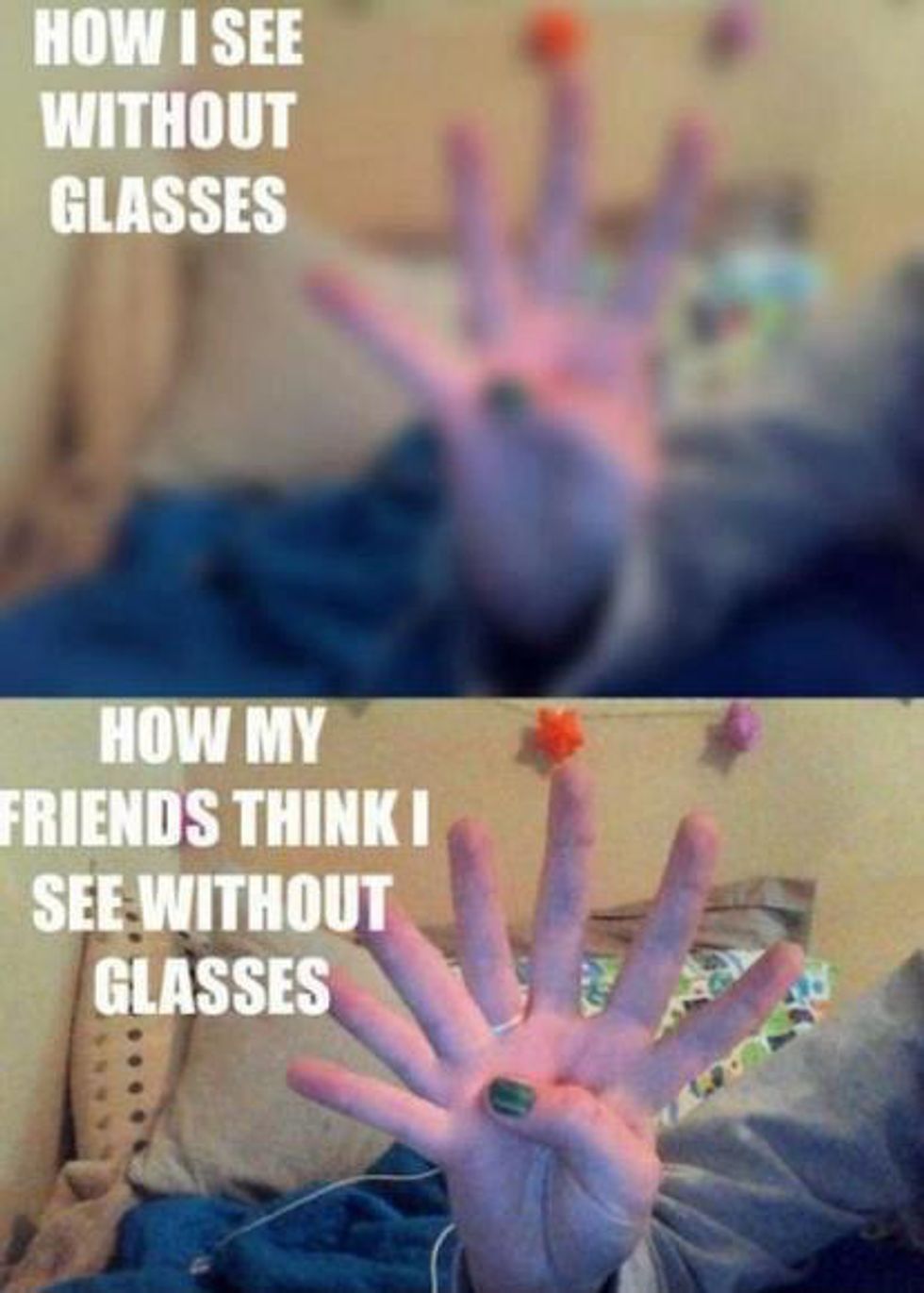 I think this is one situation that all glasses-wearers have shared at one point in their lives. Accidentally misplacing your glasses and feeling like you've literally lost a limb.