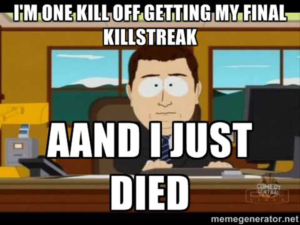 To get your nuke is 25 kills. You've camped out all game just to get it. 23...24...YOUR SHOOTING THE LAST...oh you just died...better luck next time.
