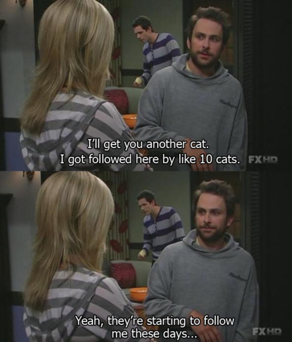 Charlie has an interesting relationship with cats, so definitely try to avoid not doing laundry (and eating cat food to pass out).