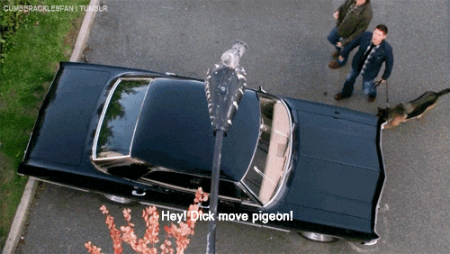 In season nine, Sam and Dean are hunting something down that’s human, but also animal. Their key witness is a dog who saw this monster kill his owner. In order to talk to the dog Sam creates a potion for Dean to drink. Not only can he talk to the dog, he can also talk to all animals. Including nasty pigeons. (s9e5).