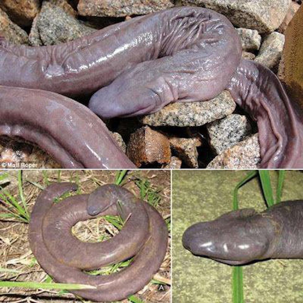 Despite being a limbless amphibian, this animal is also known as the 'Penis Snake,' and for very obvious reasons. Besides its unique phallic shape, this animal is also considered to be weird for its lack of eyes and lungs, and it's ability to breathe through its skin. This is not the first animal to be compared to the male sex appendage, and it certainly won't be the last.