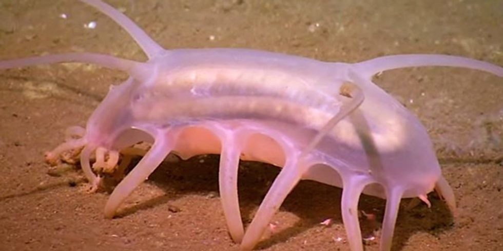 Using their tube-like appendages, the Sea Pig walks across the sea floor. Their legs use a hydraulic system that inmates/deflates the legs in order to provide movement for the organism. They walk about eating scum, so, yeah, they're pretty much just undersea farm pigs.