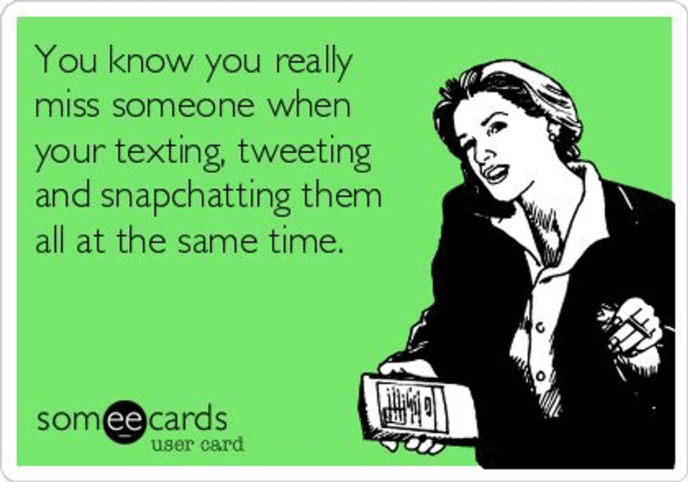 After being states apart for three months, you’re finally reunited with your home friends, and all's right with the world again. Lifehack: bring snacks with you when you see your friends because you will be hugging them for at least an hour.