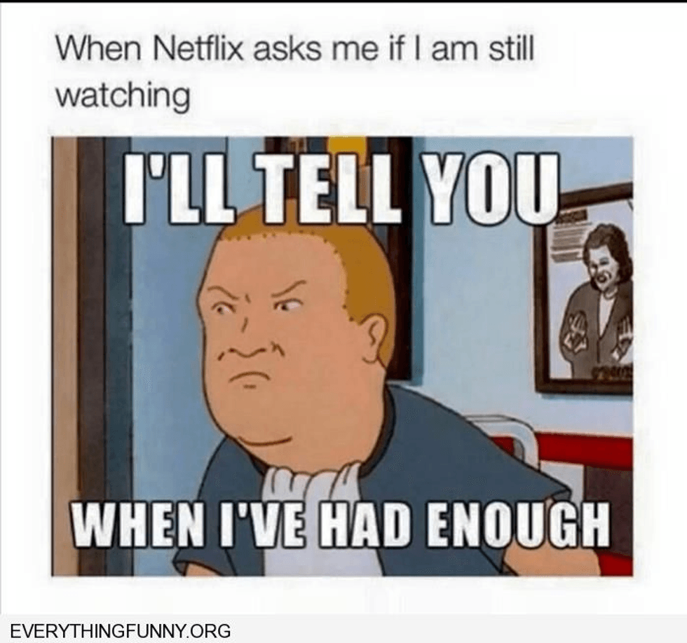 When your friends are busy, your plans consist of Netflix with a side of Netflix. Your only exercise is running to the bathroom when they say “previously on,” because you just watched the last three seasons in one sitting.