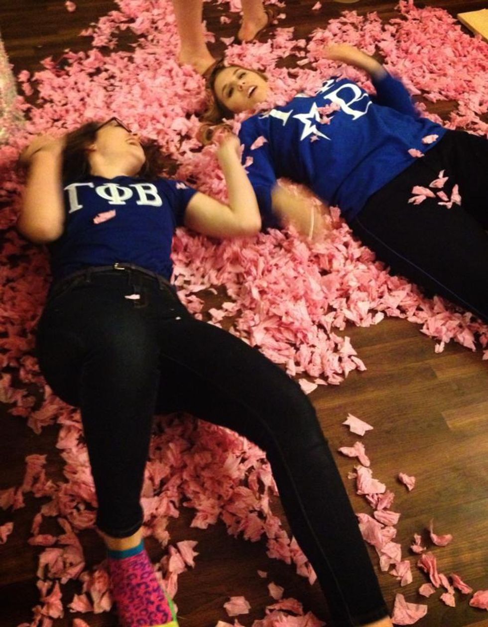 I definitely neglected to get sleep during Homecoming week, which I regretted when I had to stand up in class the next day because I was about to pass out from exhaustion. There was even a moment when I was so delirious that one of my sisters carried me back to my room, only for me to wake up in the morning with no memory of how I got there.